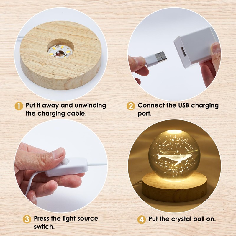 NEWCOMDIGI 8 Pack Display Stand 4in Usb Light Base For Glass Art Wooden Base Stand For Crystal Display Warm Light Base Stand Craft