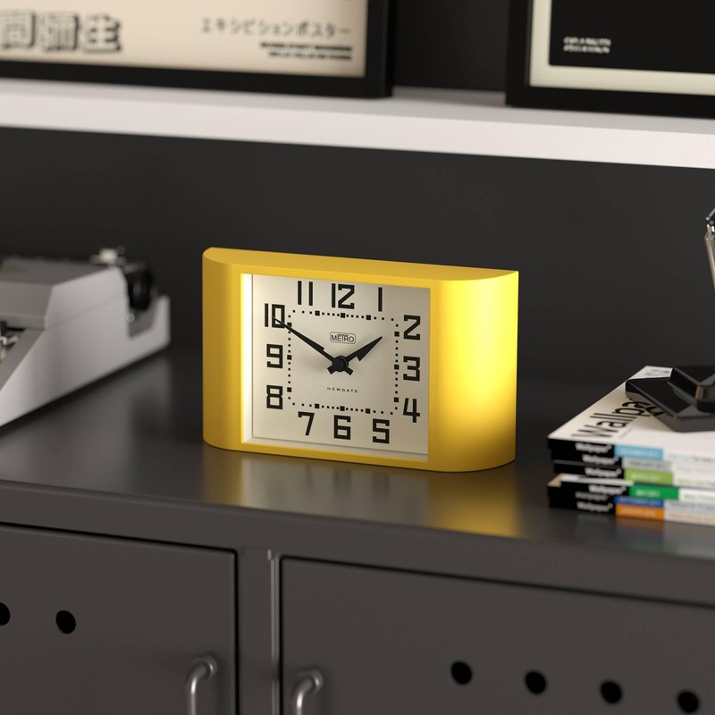 NEWGATE® Mini Metro desk clock | Retro mantel clock | Citrus yellow | Mid century style for desk, table top, shelf or bedside