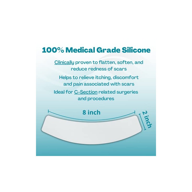 NewGel+ Advanced Silicone Professional Scar Treatment Strip for Abdomen, C-Section, Injury, Keloids, Burns, REUSABLE, 2" x 8" C-shaped Sheet 2-Count - CLEAR