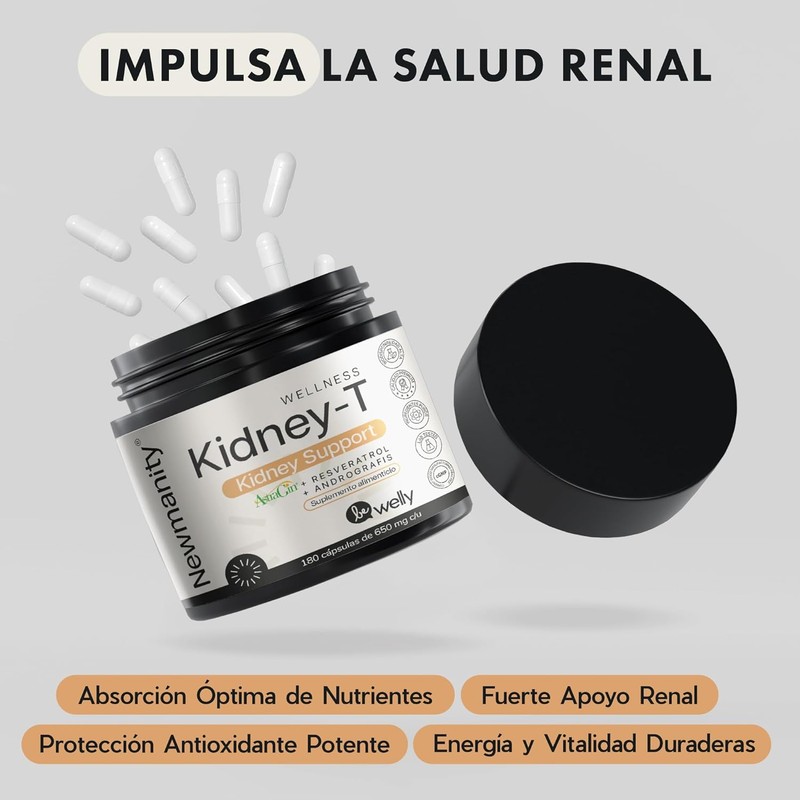 NEWMANITY Kidney-T Astragin + Resveratrol + Adaptogenos - 2 meses - Con Reishi, Cordyceps, Andrografis para Apoyo a los Riñones y Bienestar Integral - Capsulas Veganas