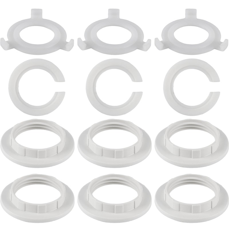 - 3 Kinds of Plastic Lamp Shade Reducer Ring: You will receive 3 different styles of lamp shade adapter ring, including 6 x E27 To E14 lamp shade reducer ring, 3 x E14 screw collar ring, and 3 x three-buckle lamp shade ring. Outer diameter: 49 mm, inner diameter: 29 mm/Outer diameter: 43 mm, inner diameter: 29 mm.