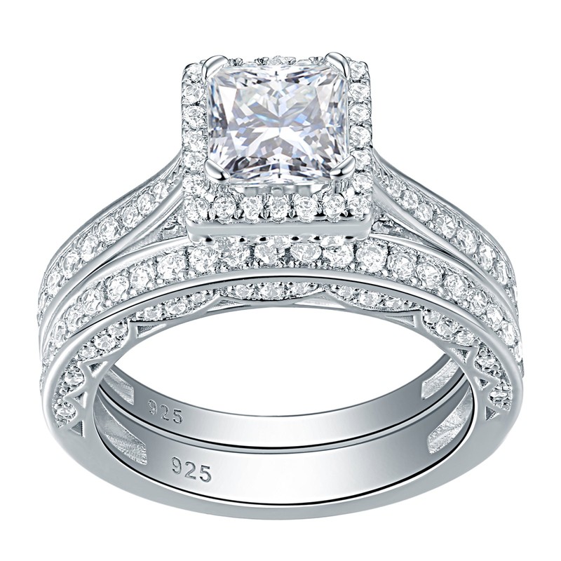 - ♥Good for Daily Wear♥ Newshe Jewellery high quality AAAAA cubic zirconia sterling silver engagement ring set for women. Shine like a natural diamond wedding rings for women. Perfect to match with womens wedding bands.