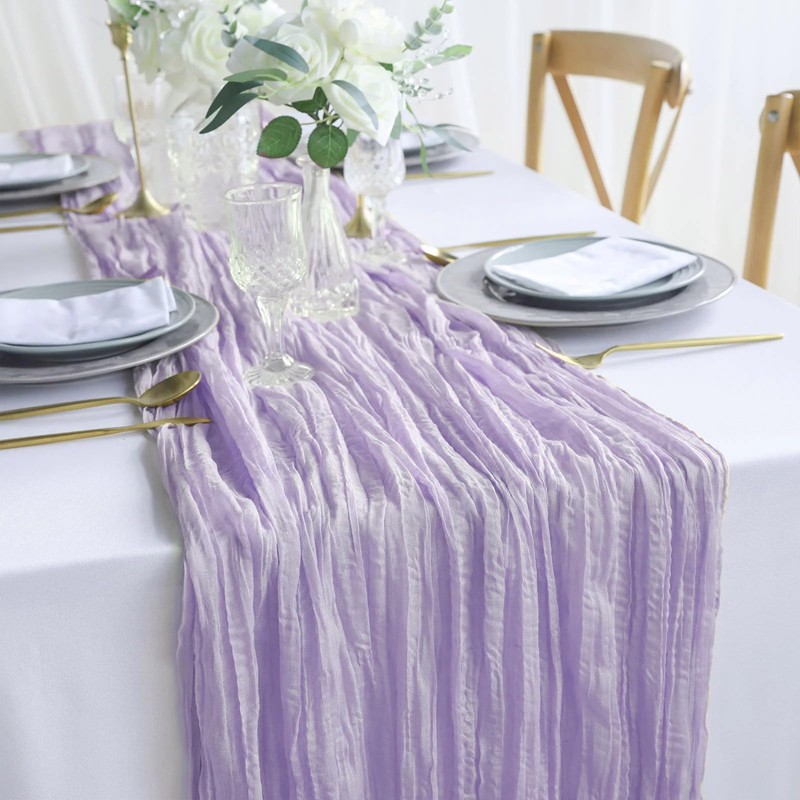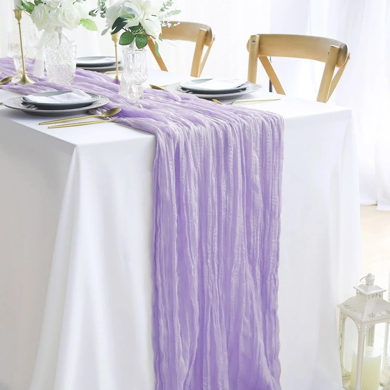 Newthinking 4 Packs Cheesecloth Table Runner, 10 ft Purple Cheesecloth Table Runner, Rustic Gauze Fabric Table Runner for Wedding Table Decoration Holiday Party, 90X300CM