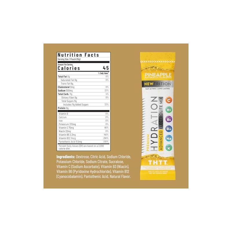 - Electrolyte Drink Powder Packets: NewTrition’s hydration packets transform your regular water into a super-hydrating drink, helping you stay hydrated faster and better than water alone