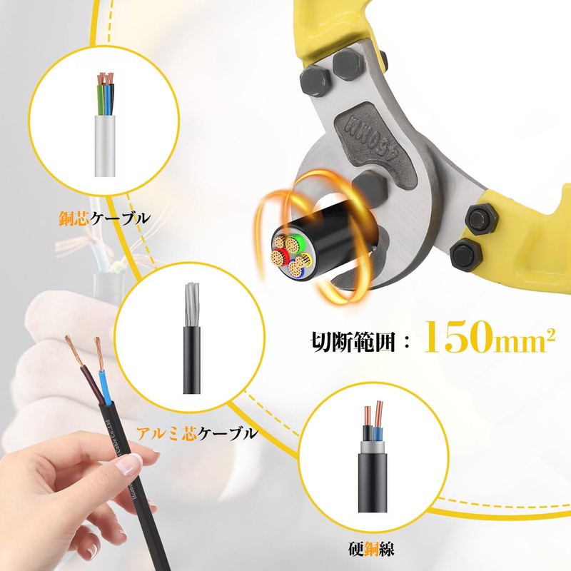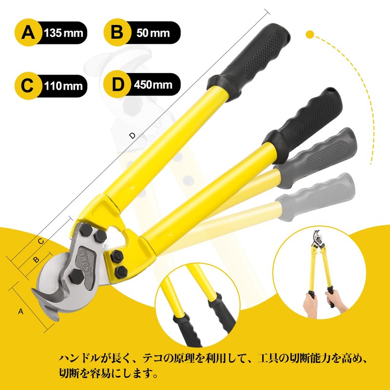 NEWTRY Cable Handy Cutter, Cable Cutter, Wire Cutter, Double-edged, Wire Size, 100sq-400sq (14 inches)