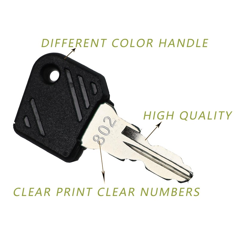 - Key Set:9pcs Forklift Ignition Key Set with a stainless steel keychain, easy to hold and carry. Handle with different colors and clear numbers for convenient use.
