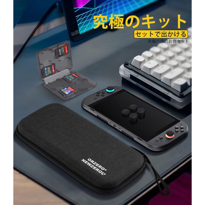 Newzerol【3in1セット】Switch2用アクセサリ ジョイスティックカバー(シリコン製・高/中/低3種×2個)8ゲームカード収納ケース コンパクト収納バッグ スノーフレーク生地 ゲーム操作・データ管理・保管一元化 ブラック