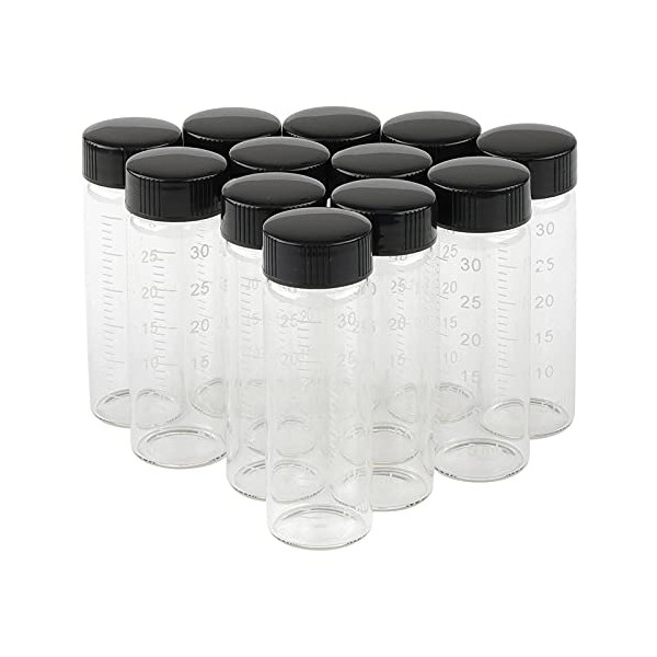 - Package include 12 x glass autosampler vials. Capacity: 30ml/ 1oz. Transparent bottle body with graduations makes everything clear at a glance.