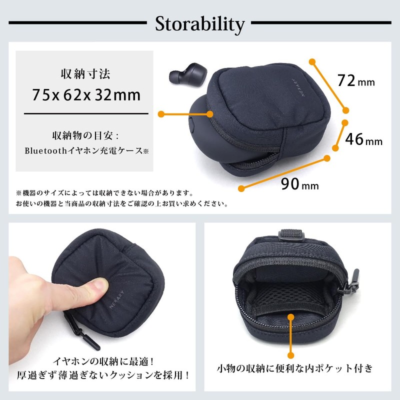 • ◆Storage Estimate: Bluetooth earphone charging case *Depending on the size of the device, it may not be able to store it. Please check the storage dimensions of your device and this product before purchasing