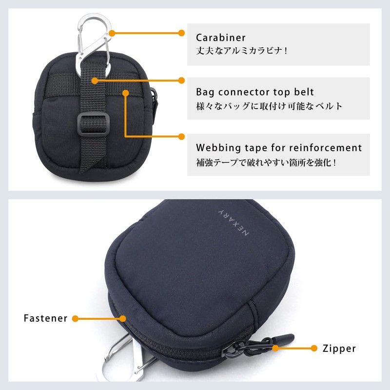 • ◆Overview: This is a small pouch that can store Bluetooth earphones. Can be attached to a backpack shoulder belt, etc. Interior pocket