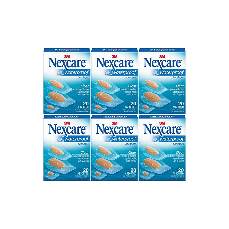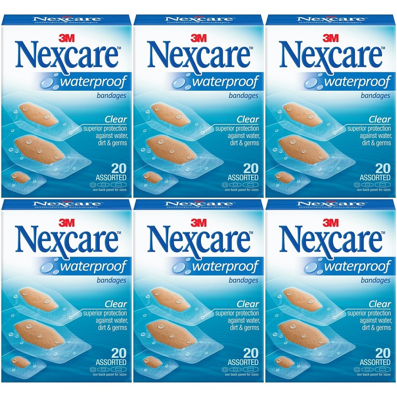 Nexcare Waterproof Clear Bandage, Assorted Sizes, 20 Ct Packages (Pack of 6)