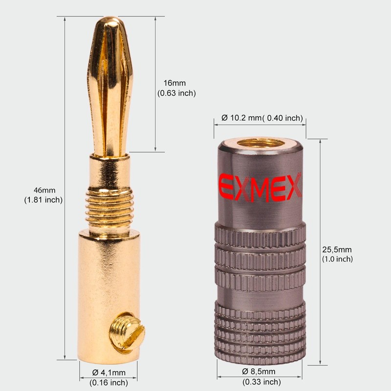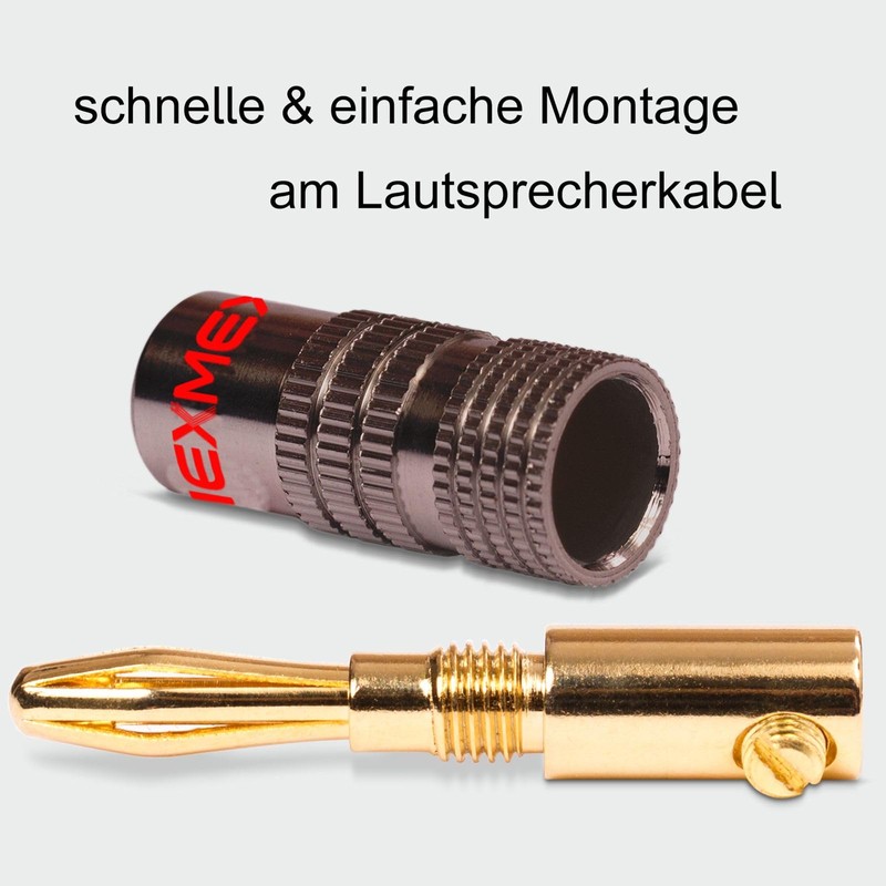 - Compatibility These NEXMEX banana plugs are specially designed to be compatible with speaker cables of various thicknesses from 2.5mm² to 4mm². Thanks to their versatile design, they can be easily used in Hi-Fi systems, home theaters, as well as in domestic and commercial applications.
