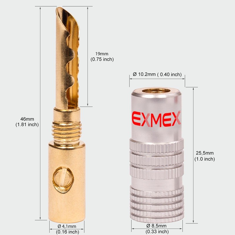 - Compatibility These NEXMEX hollow banana plugs are specially designed to be compatible with speaker cables of various thicknesses from 2.5mm² to 4mm². Thanks to their versatile design, they can be easily used in Hi-Fi systems, home theaters, as well as in domestic and commercial applications.