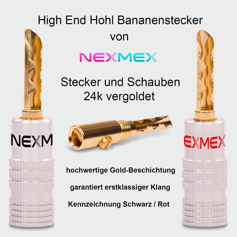 Our NEXMEX hollow banana plugs with a diameter of 4 mm are the ideal choice for a lossless and stable audio connection.