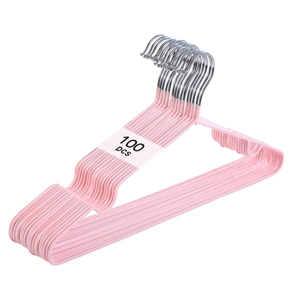 NEXMOOV ハンガー すべらない PVC特殊ラバー加工 100本組 セット 滑り止め あとがつかない 型崩れ防止 洗濯ハンガー 衣類ハンガー 多機能ハンガー 超強い荷重 変形にくい 物干しハンガー hanger 曲がらな 乾湿両用 PVCハンガー (100, ピンク)
