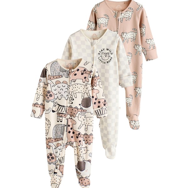 NEXT Embroidered Baby Pyjamas 3 Pack, Brown/Cream