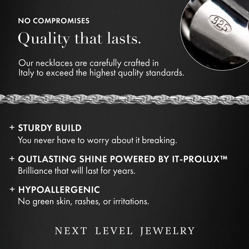 - AN OUTLASTING SHINE POWERED BY IT-PROLUX: A Cutting-Edge, Patented Technology That Will Keep Your 925 Silver Chain Shining Bright for Years to Come Without Having to Purchase a Replacement Necklace Chain. Available in 16/18/20/22/24 inch