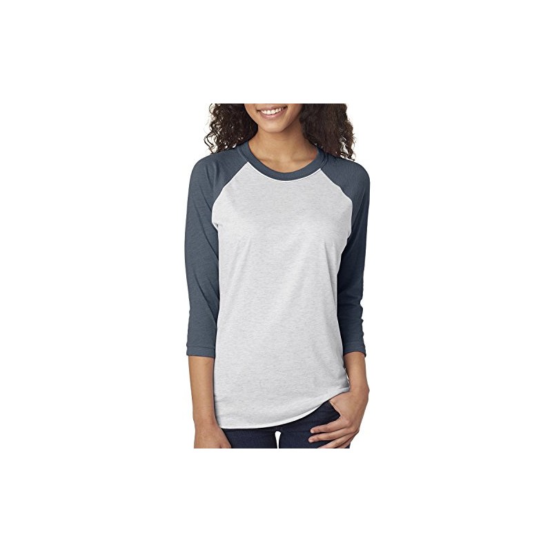 Next Level Unisex Tri-Blend Three-Quarter Sleeve Baseball Raglan Tee (Indigo/Heather White) (M)