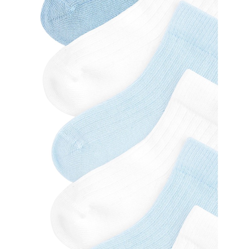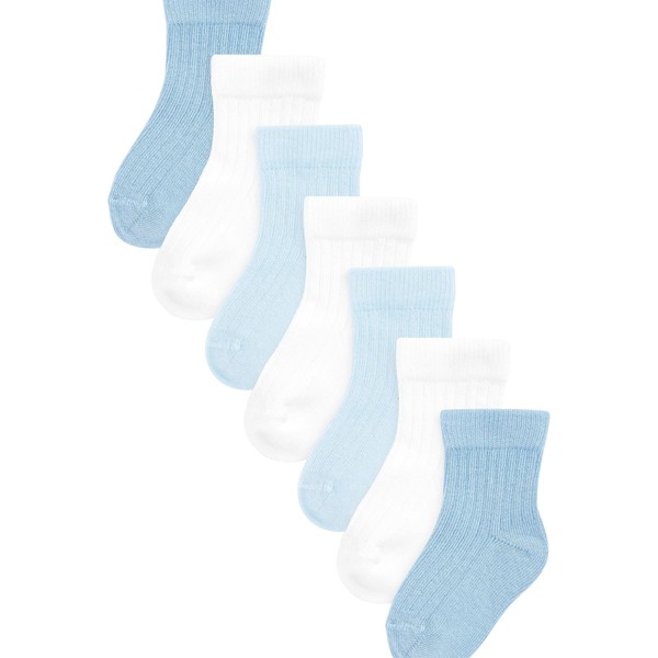 NEXT Ribbed Socks Set of 7, White/Blue, 6 - 12 months