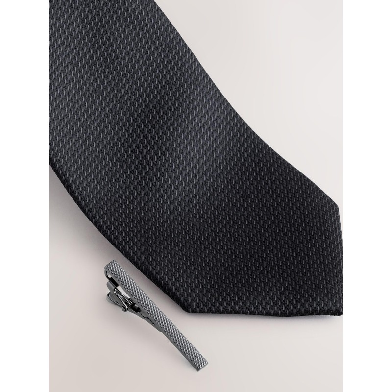 NEXT Wide Textured Tie with Tie Clip, black, Unit size