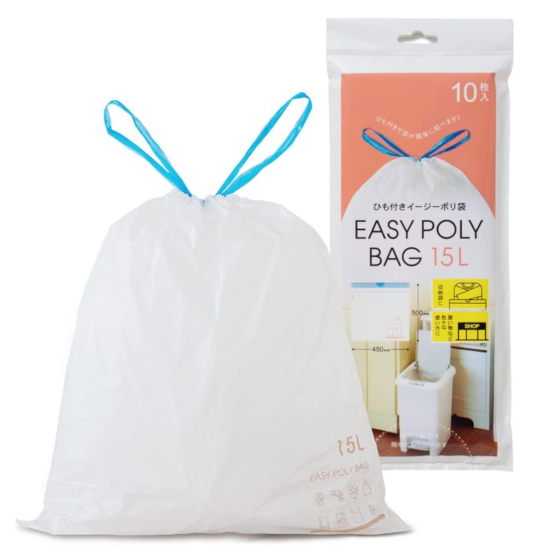 Nexta Poly Bags, Trash Bags, Easy Plastic Bags with Strings, 3.9 gal (15 L), 10 Pieces, Approx. 19.7 x 17.7 inches (50 x 45