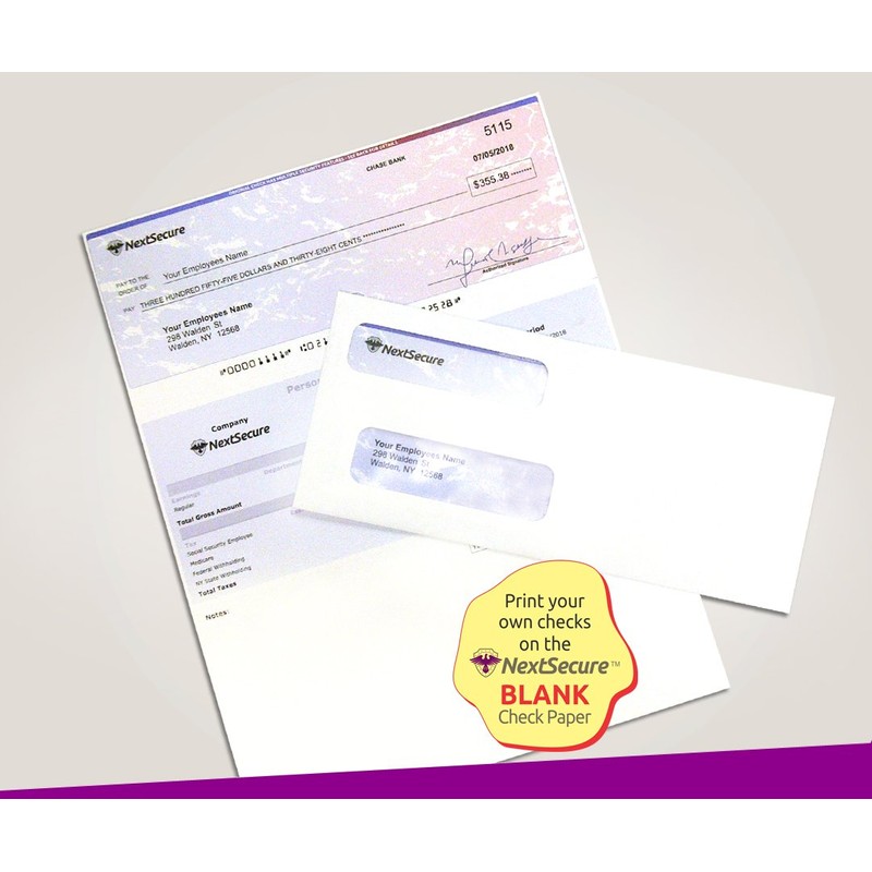 - HIGH QUALITY BRIGHT 2 COLOR CHECKS - NextSecure Checks offer a brighter red and blue print and has two full Horizontal perforations at 3.5" and 7" from the top / the extra Perf enables you to fold it into an envelope.