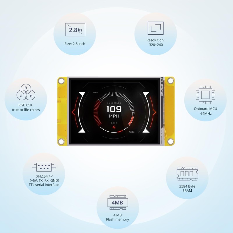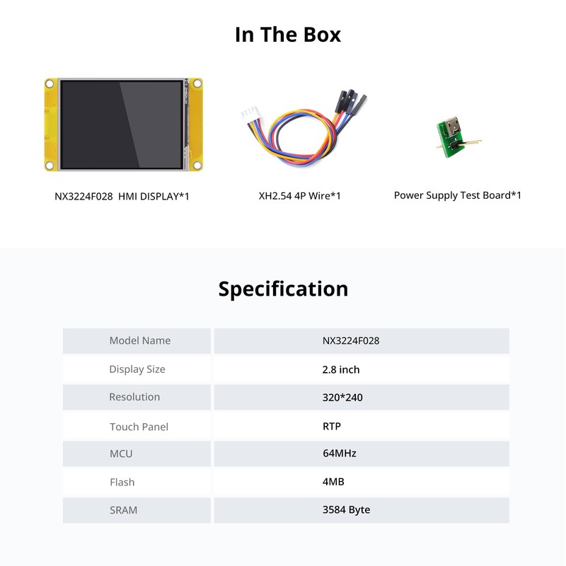 Nextion 2.8″ HMI Display Discovery Series NX3224F028 Resistive LCD-TFT Touch Screen 320×240, Nextion Display with Free Nextion Editor Software Suitable for Home Appliance, Racing Dashboard, etc.