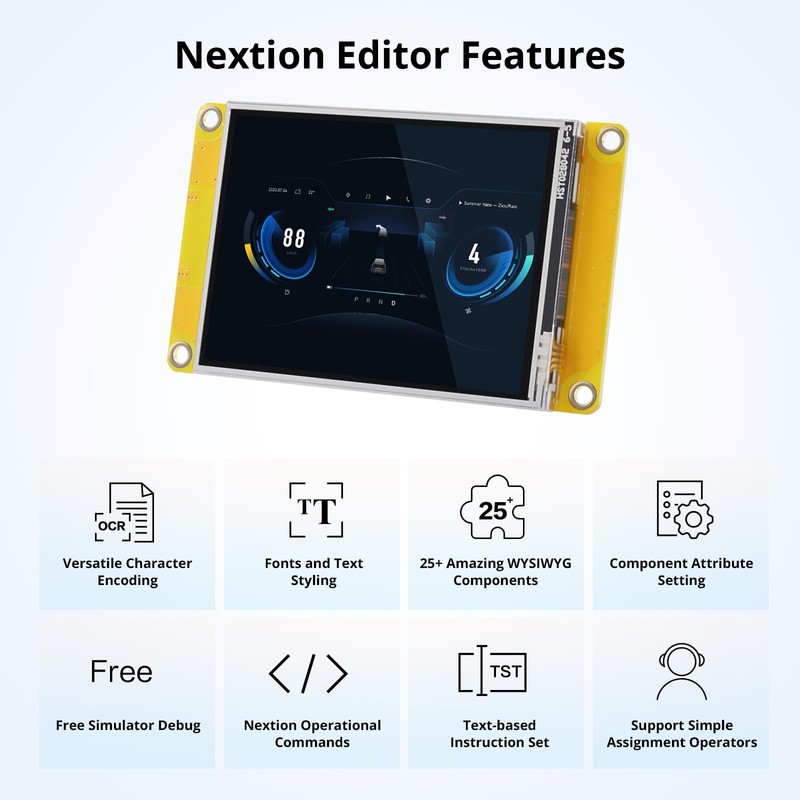- Quality and Safety Assurance: Nextion guarantees availability for a minimum of 5 years for all series products and is CE and RoHS compliant, and the Nextion technical support team provides responsive basic hardware technical service across all time zones.