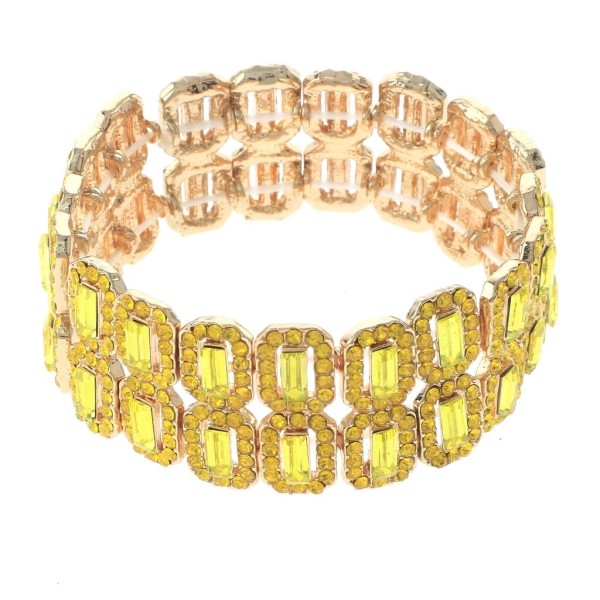 Gold Tone Metal Rhinestone Stretch Bracelet / Size: 1" H / Lead & Nickle Compliant / Color: Gold & Yellow