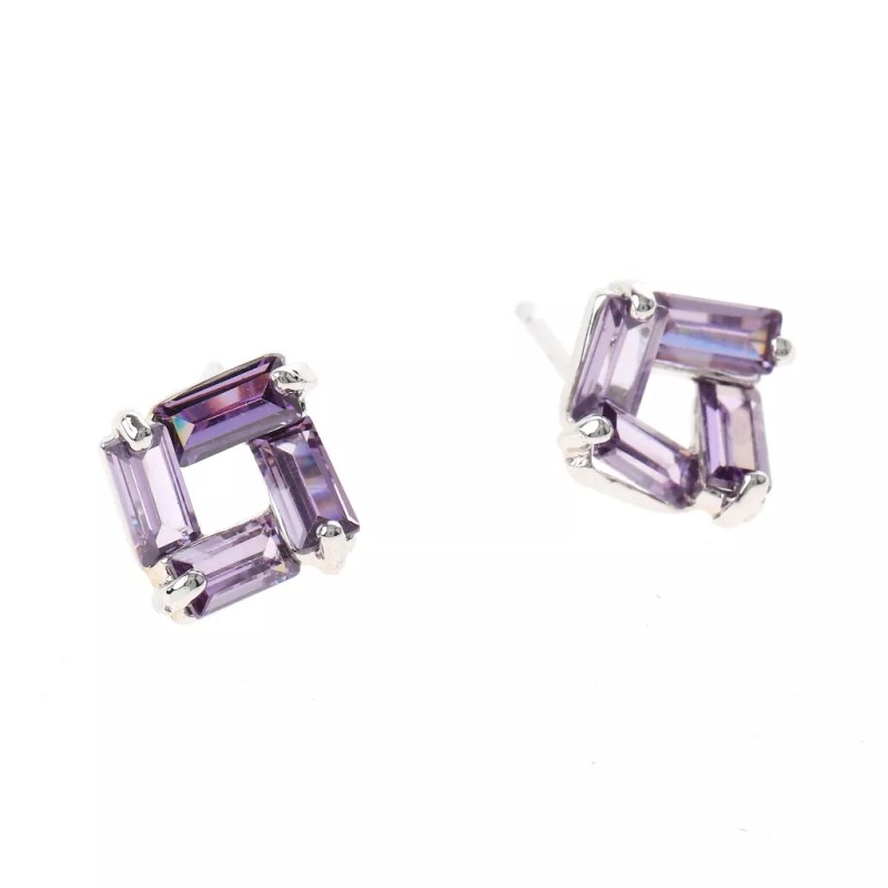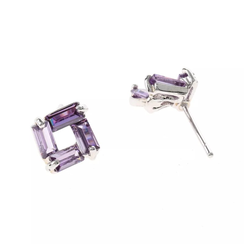 Silver Tone Metal Cubic Zirconia Push Back Stud Earrings / Approximate Size: 0.25" L x 0.25" W / Cubic Zirconia / Lead & nickel compliant / Color: Silver & Purple