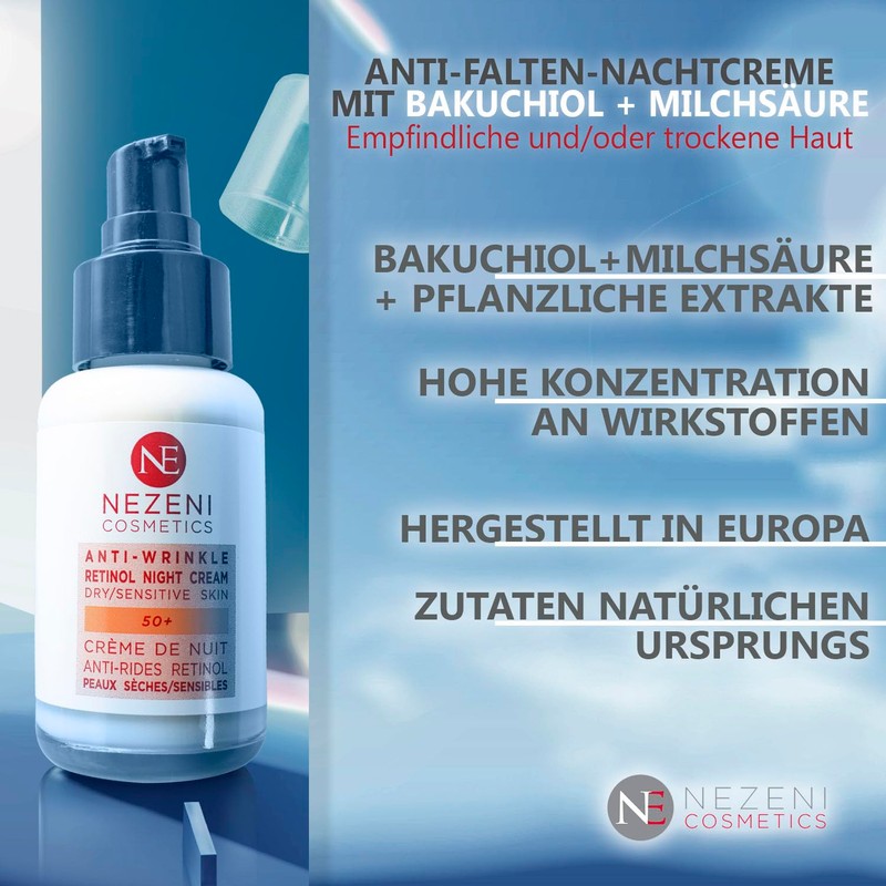Nezeni Bakuchiol Anti-Wrinkle Night Cream for Women/Men, 26 Active Ingredients, Deep Wrinkle Filler, Firming Anti-Wrinkle Night Cream for Face, Neck and Décolleté, Dry and/or Sensitive Skin