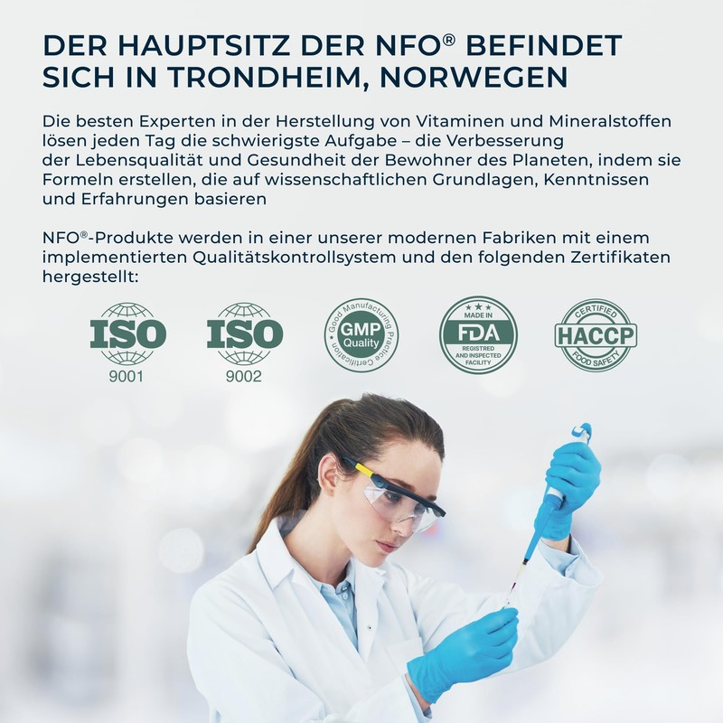 NFO is a leader in the development of bioactive omega-3 fish oil complexes in Europe as well as vitamin-mineral and plant complexes.