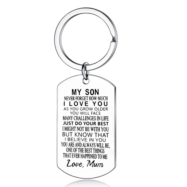 - The perfect keychain is engraved with the words "To my son, never forget how much i love you. As you grow older, you will face many challenge in life, just do your best, i might not be with you, but know that i believe in you, you are and always will be, one of the best things that ever happened to me. Love, Mum."