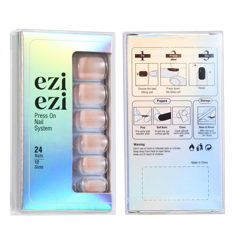 - What You Get: 24 pcs fake nails with design in 12 different sizes, prep pad, mini file, cuticle stick. No matter the size or width of your nails, you can choose the most suitable false nails for yourself