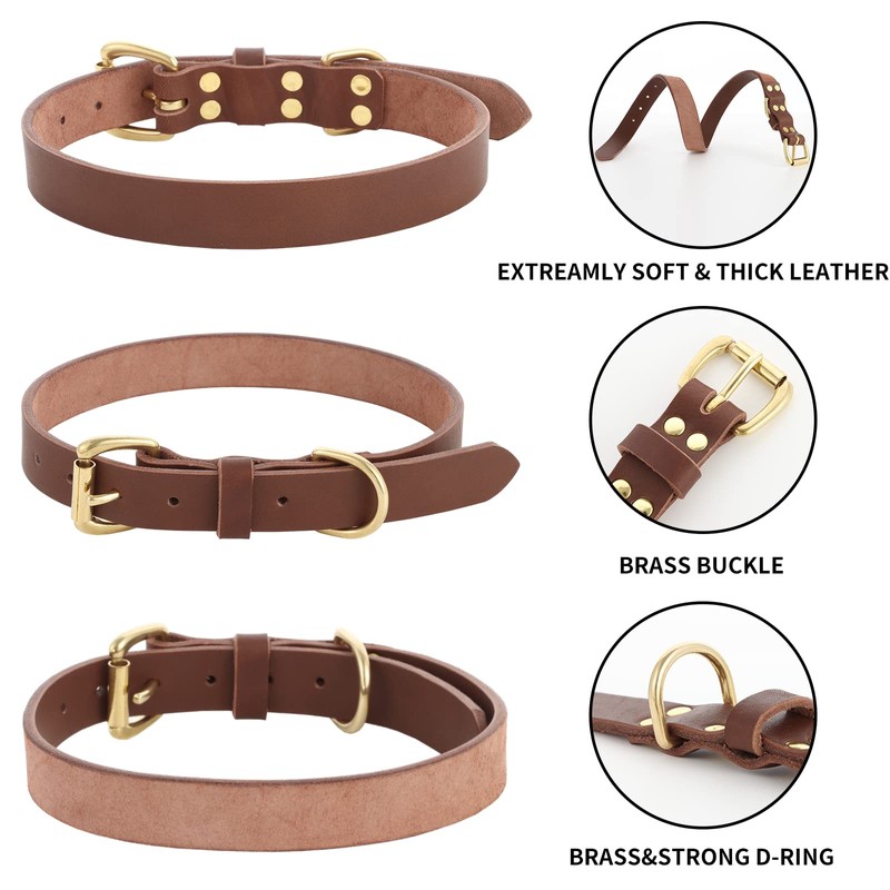 - STRONG & DURABLE - Our basic and classic dog collars are equipped with heavy – duty real brass buckle. Lightweight and safety. The brass hardware will not rust like other cheap dog collars. Simple but classy design, timeless and fit all season.
