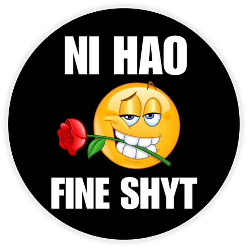 Ni Hao Fine Shyt - 3 Pack Circle Stickers 3 Inch - Smiley Face Funny Meme Gen Z Alpha Brain Rot Slogan