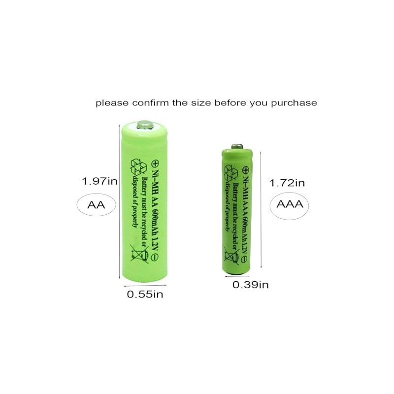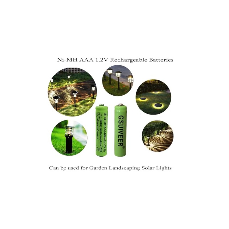 - Las baterías recargables Ni-MH AAA de 1.2 voltios 600 mAh son ideales para aplicaciones de descarga rápida/luces solares, control remoto RC/AC, etc