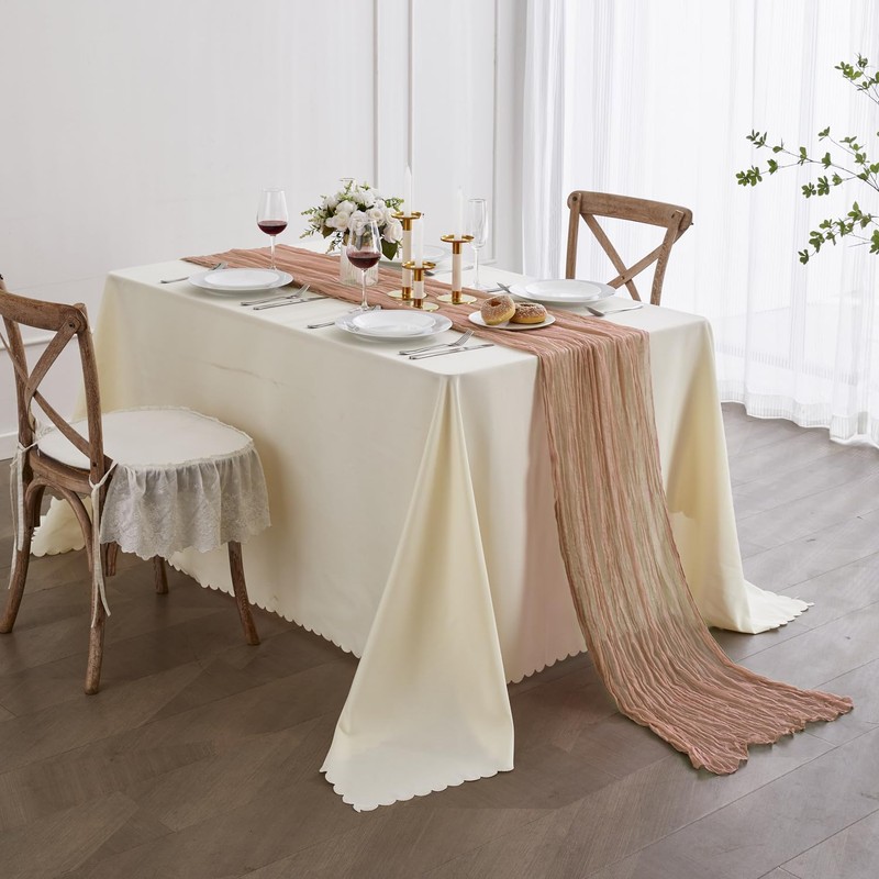 - PREMIUM MATERIAL: The dusty rose table runner is made of 100% premium cotton gauze fabric. The cheese cloth table runner has beautiful folds, sheer fabric, a soft and smooth feel, let your activities romance and elegance.