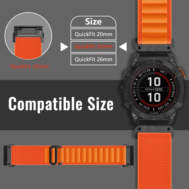 • Compatible models: Niboow nylon QuickFit 22 mm strap for Garmin Fenix 7 Pro Solar/Fenix 7 Pro Sapphire Solar/Fenix 7/Fenix 6 GPS/Fenix 6 Pro GPS/Fenix 6 Pro Solar/Fenix 6 Sapphire GPS/Fenix 5/Fenix 5 Plus/Fenix 5 Sapphire/Garmin Epix/Epix (Gen 2)/Descent G1/Appropriate. ach S62/Approach S60/Garmin Quatix 7 GPS/Quatix 7 Sapphire Edition/Quatix 7 Standard Edition/Garmin MARQ Athlete (Gen 2) - Carbon Edition/MARQ Golfer (Gen 2) - Carbon Edition/MARQ Commander (Gen 2) - Carbon Edition