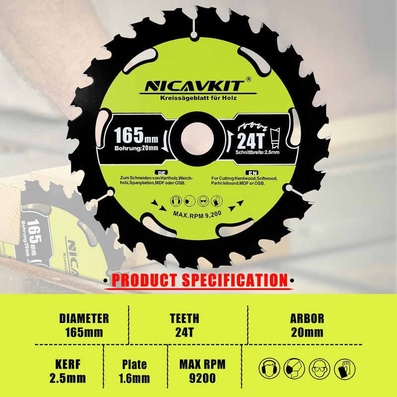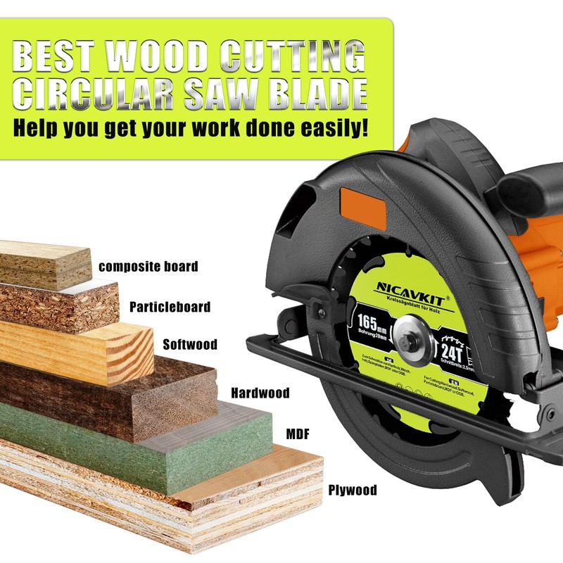 NICAVKIT Diameter 165 x 20 mm Circular Saw Blade for Wood (Saw Blade for Wood, Diameter 165 x 20 x 2.5 mm, 24 Teeth, Accessories Circular Saw) Carbide Teeth Circular Saw Blades, Suitable for Softwood