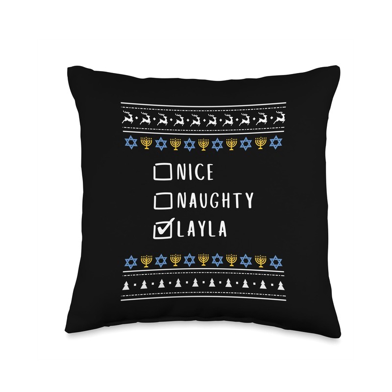 Nice, Naughty, Layla, Ugly Sweater Style Throw Pillow