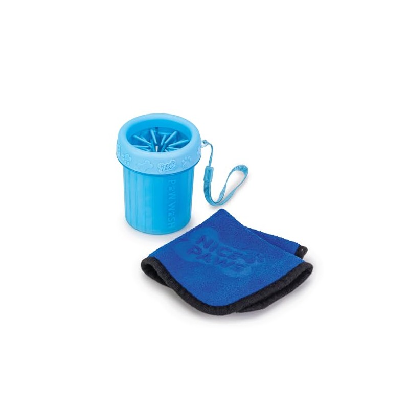 NICE PAWS - Dog Paw Cleaner - Blue - Small - 1 Count - Portable Dog Paw Washer with Microfiber Towel, for Muddy Paws, Small Dogs