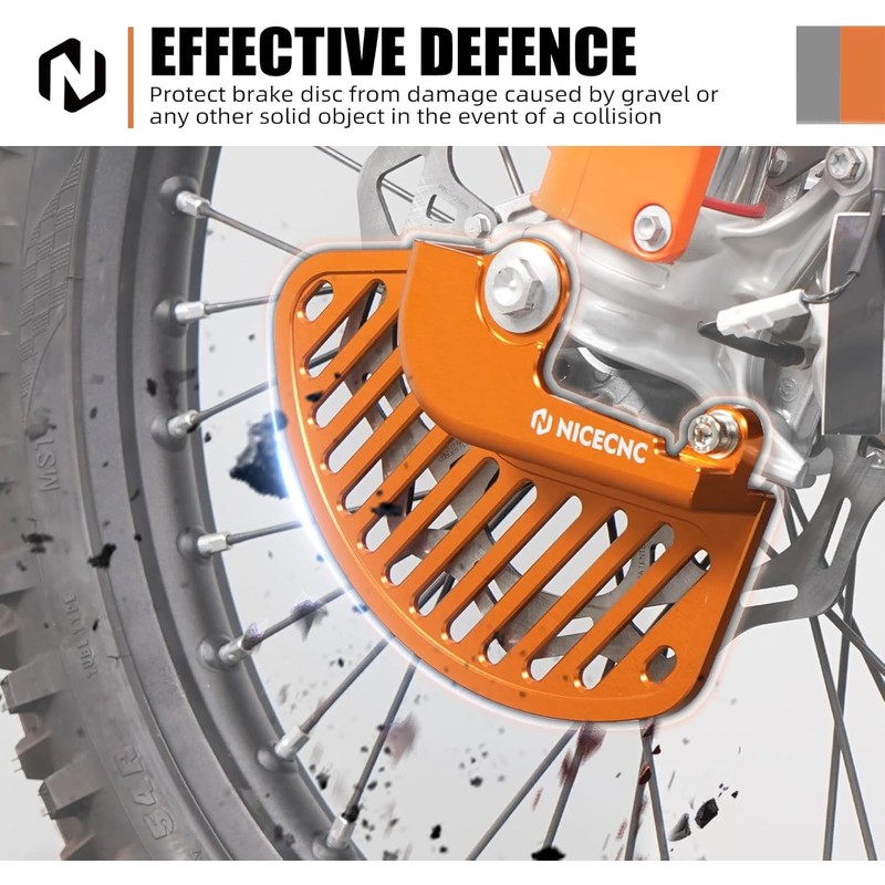 【Collision Damage Preventio】 Effectively protects the front brake disc from damage caused by gravel, rocks, or any other solid object in the event of a collision. Can also be used in heavy-duty and aggressive off-road riding without worry