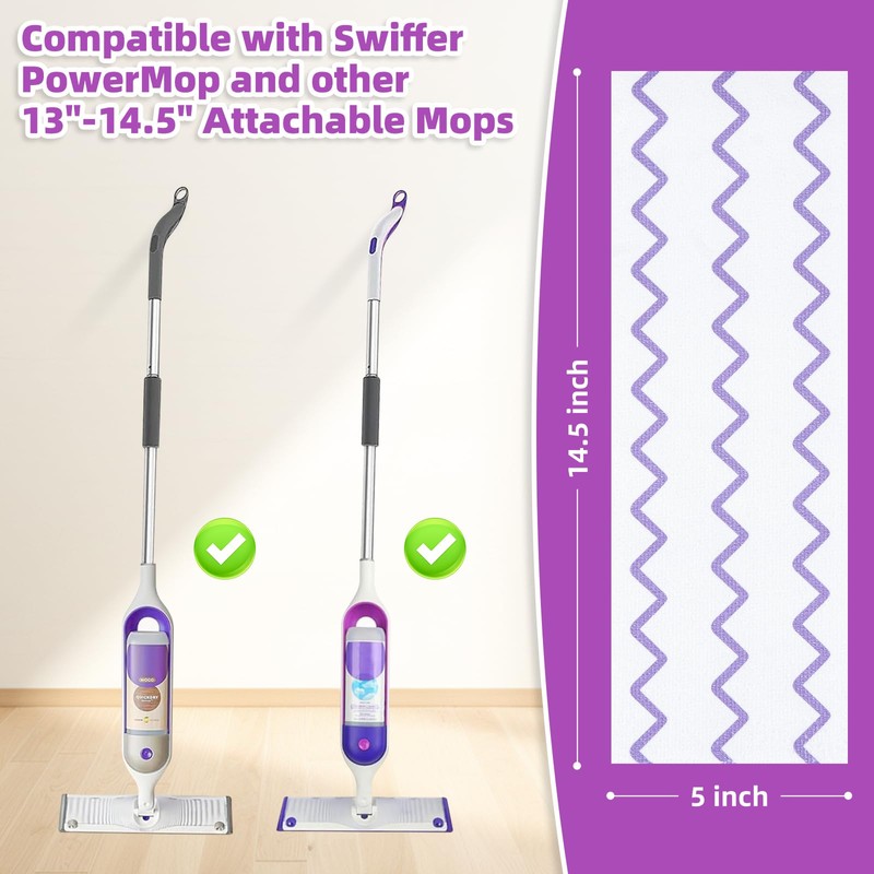 - Wide Compatibility: These 14.5" x 5" mop pads are compatible with Swiffer PowerMop and also fit other brands of mops requiring pads from 13 to 14.5 inches in width. Note: Not compatible with Swiffer WetJet or Swiffer Sweeper. Kindly confirm your mop model prior to making a purchase