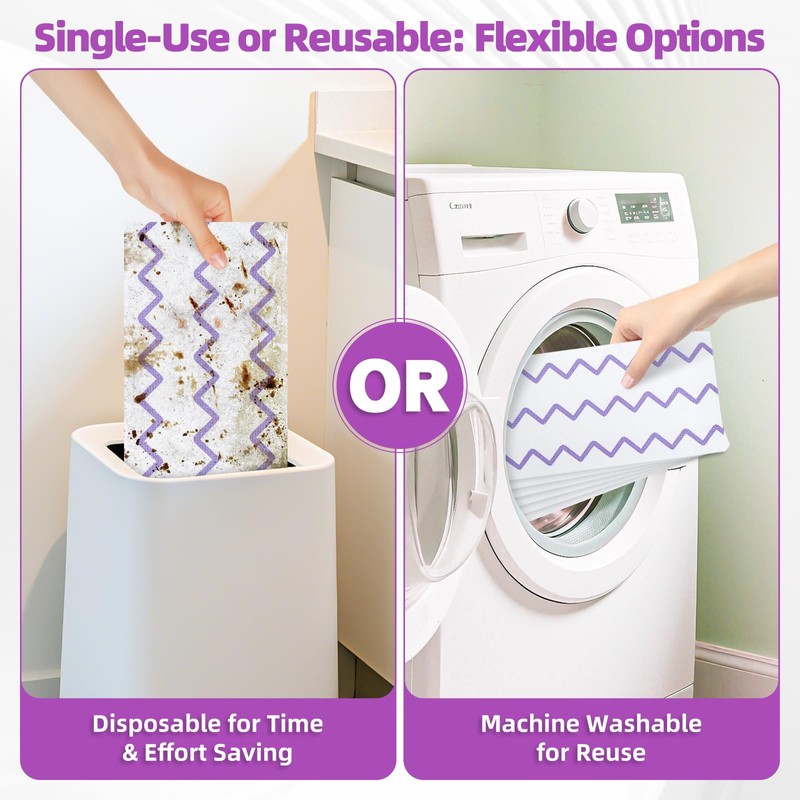 - Semi-Disposable Innovation: These pads offer flexible use—machine-wash (gentle cycle recommended) for reuse or toss after a single use. Sold in bulk, their durable design provides the choice between reusable or disposable use, fitting any cleaning need and budget