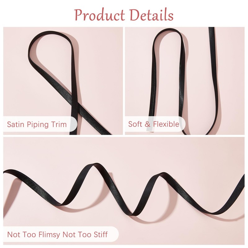 - WIDE USAGE: Our satin ribbon is great for a wide range of uses, including headbands, bow ties, sewing, handmade craft projects, dresses, cheongsam decoration sewing, dining tables, and sofa cushion seaming binding hemming piping. Its versatility makes it a must-have in any crafter's toolkit.