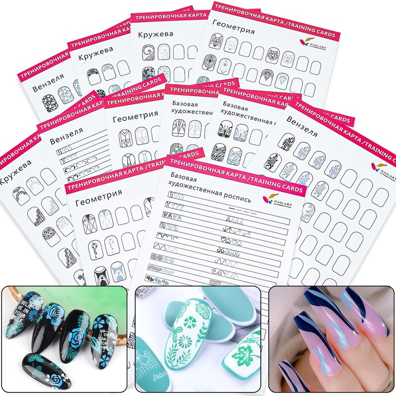 - ♕[NAIL ART PRACTICE BOOK]: There are 12 sheets nail art practice paper, a variety of nail practicing types, available for selection.