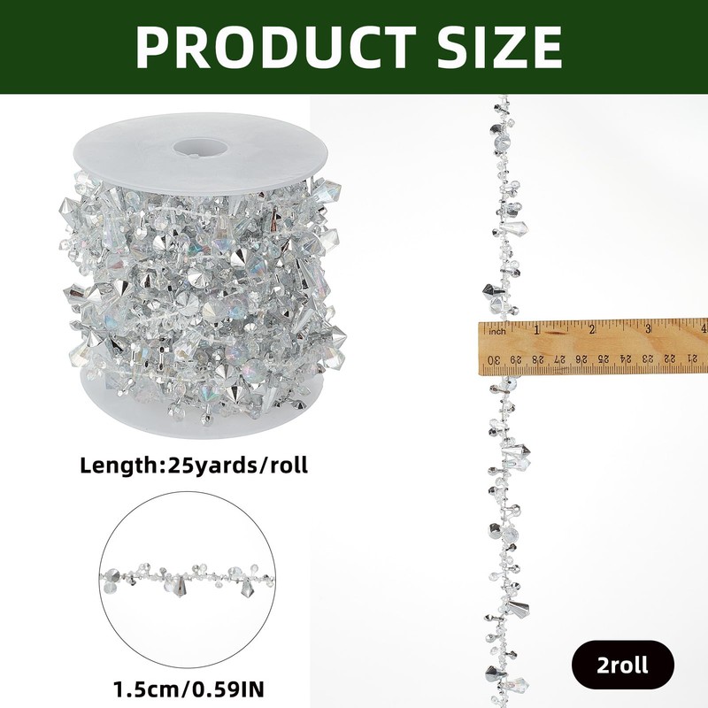 - 16 Feet Roll Set: 16ft (5m) long Christmas clear iridescent and silver bead garland - Twisted design twinkly strings of beads - The size of the Large beads are 15 x 9 mm, the small beads are 12 x 5 mm. 16 Feet covers much of your tree or home and room