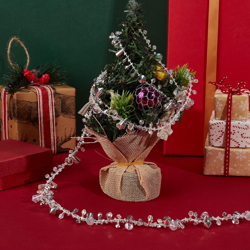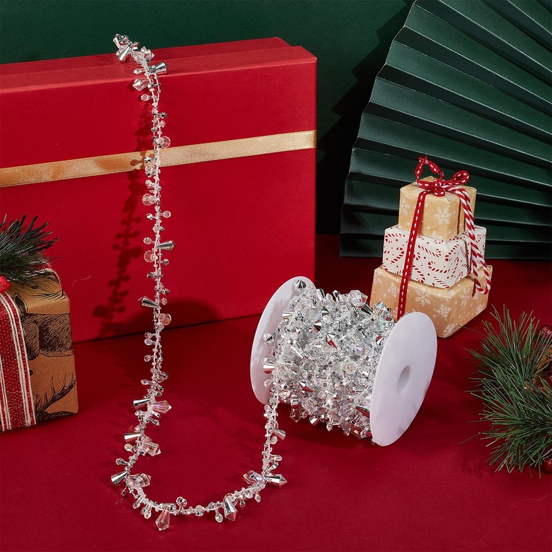 NICENEEDED 16.4ft Christmas Garland Christmas Tree Silver Bead, Clear Iridescent Silver Bead Rustic Crystal Garland Ornaments