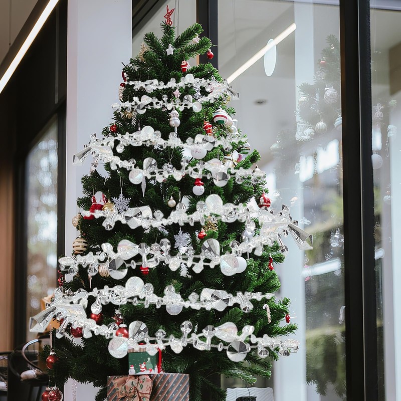 - Hang Anywhere: You can hang the iridescent diamond and silver twisted garlands on your Christmas tree, over the fireplace, on your door, on the doorknob, from your ceiling, or drape around the window